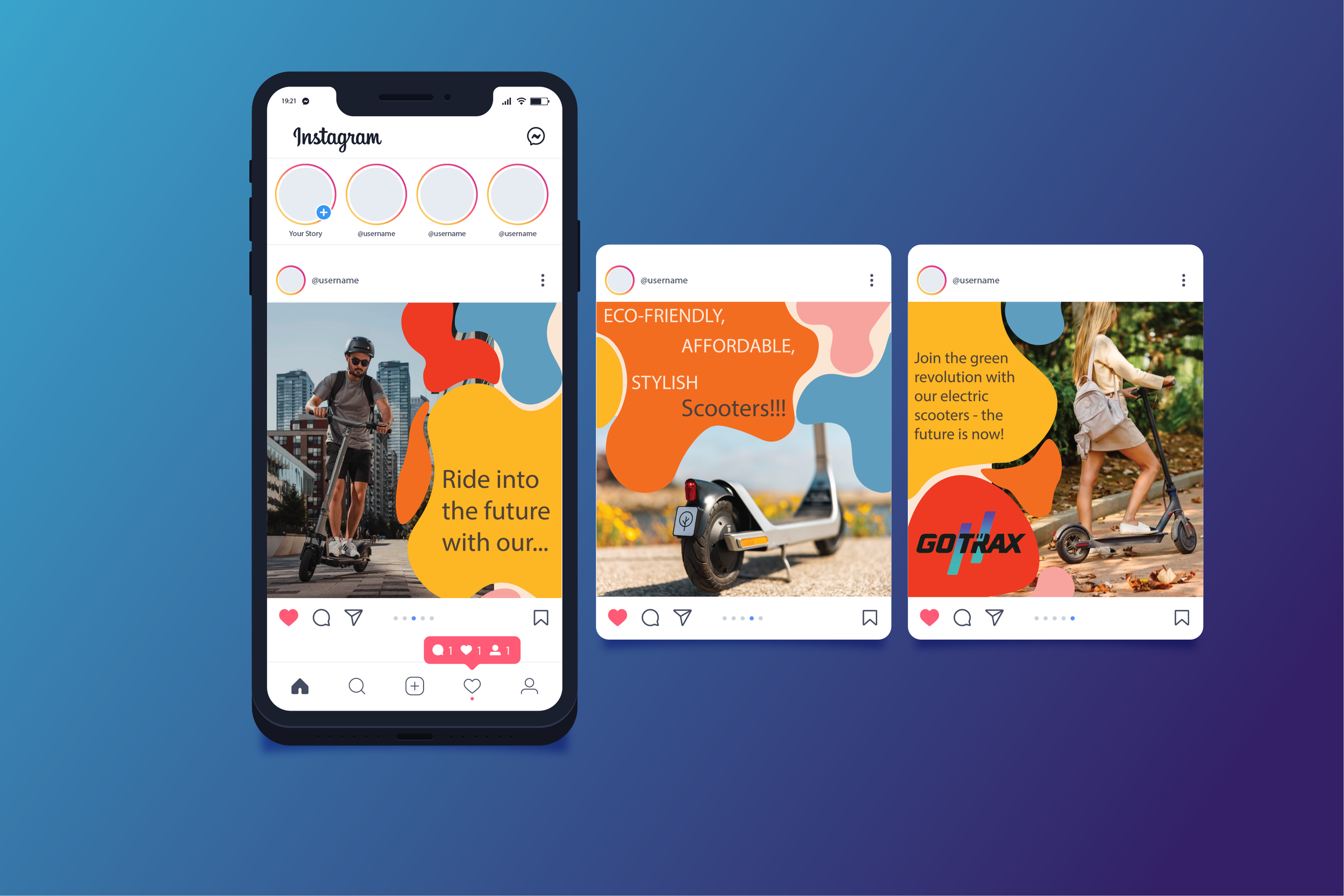 For this assignment we were told to choice a product and make a 3 slide Instagram Ad. I decided to pick the E-Scooter as my product and I want to direct my advertisement to college student.